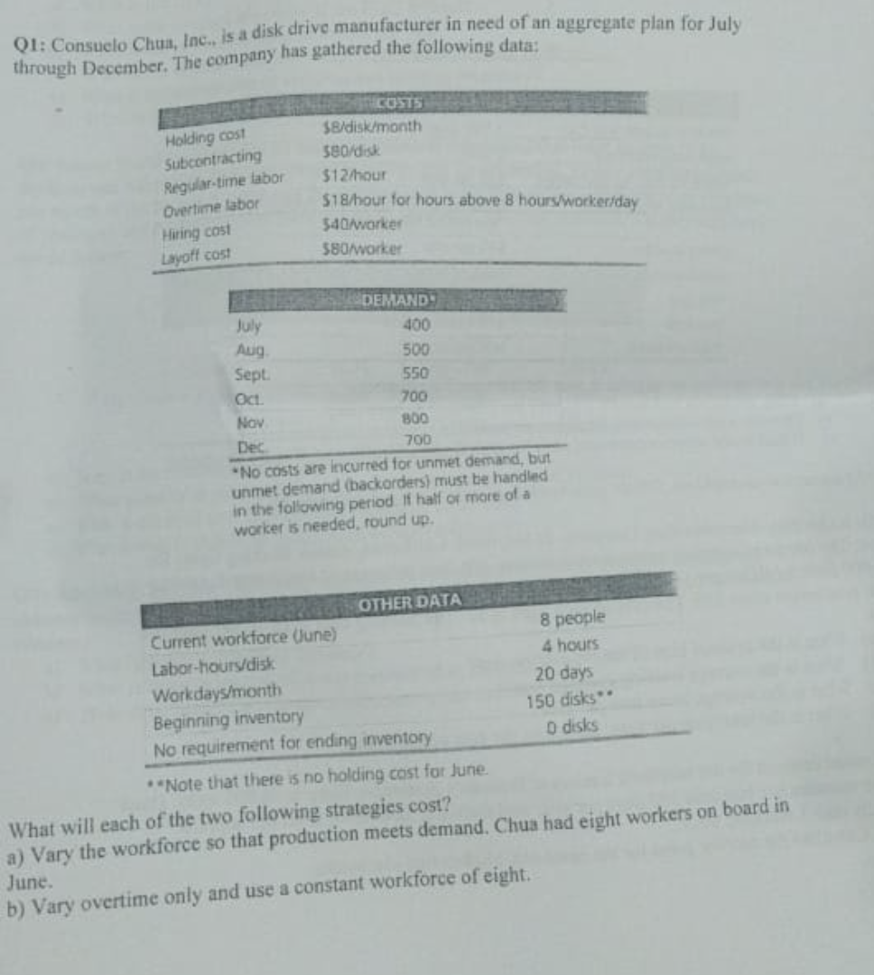 Solved Q1 Consuelo Chun Inc Is A Disk Drive Manufacturer Chegg Com
